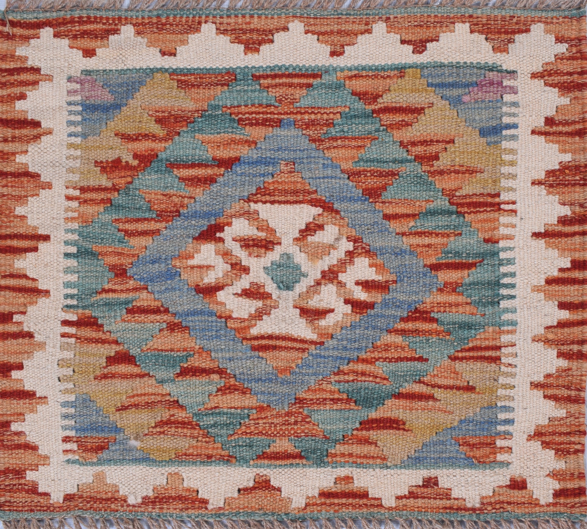 Our small kilim mats are perfect for adding a touch of warmth and artistry to any tabletop surface. Measuring approximately 20" x 20" this versatile piece can be used as a unique cover for a small table, a cozy accent on a kitchen island, or an inviting layer on a coffee table. A warm pattern adds depth and texture, making it a beautiful foundation for decorative displays, whether on a bedside table, credenza, or as the base of a centrepiece.Â