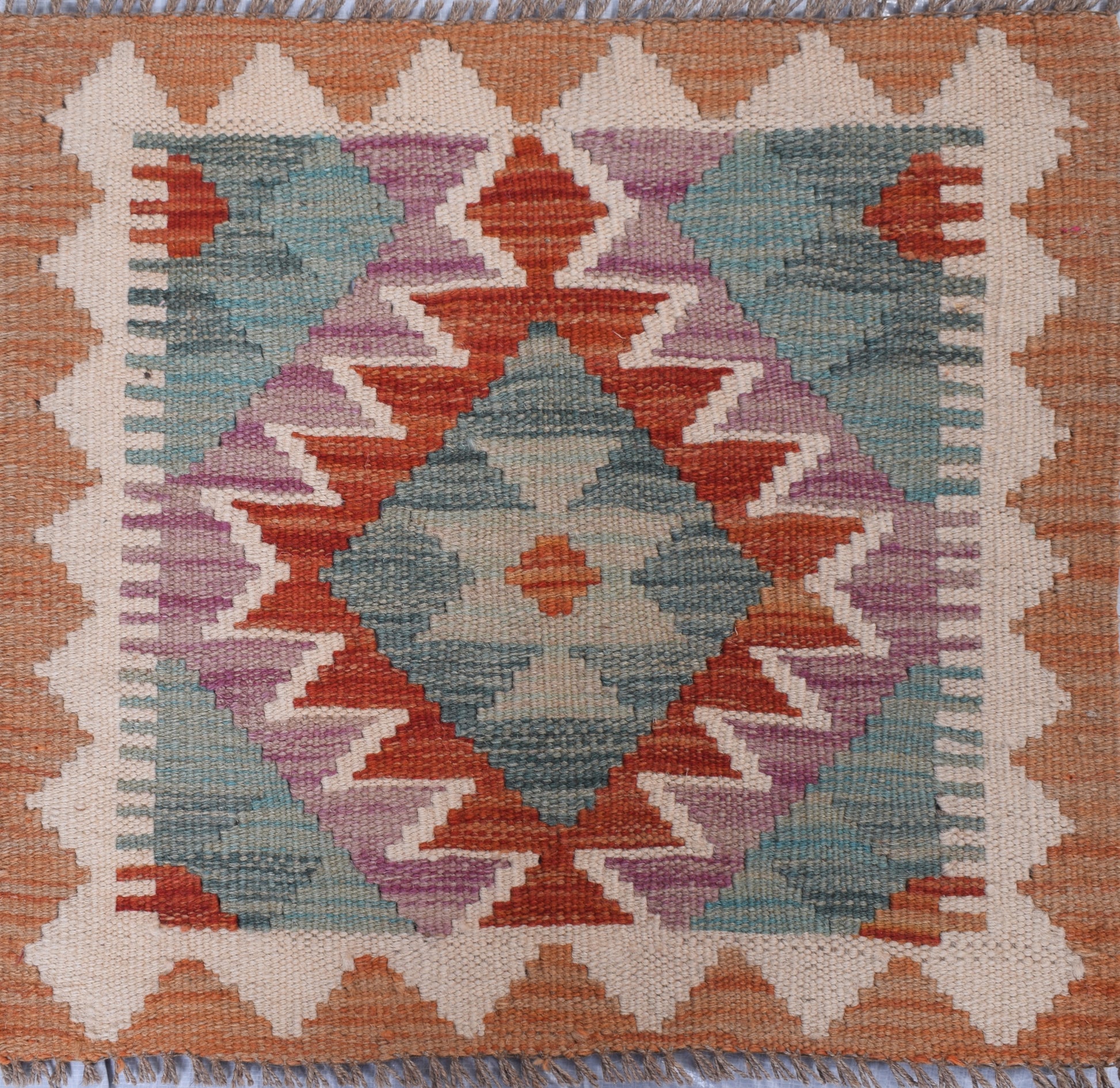 Our small kilim mats are perfect for adding a touch of warmth and artistry to any tabletop surface. Measuring approximately 20" x 20" this versatile piece can be used as a unique cover for a small table, a cozy accent on a kitchen island, or an inviting layer on a coffee table. A warm pattern adds depth and texture, making it a beautiful foundation for decorative displays, whether on a bedside table, credenza, or as the base of a centrepiece.Â